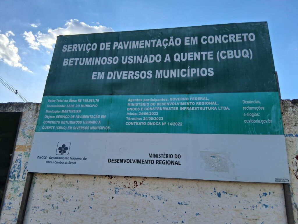 Blog do Barreto – O vereador Jean Ferreira (PT) denunciou em comentário em postagem do Blog do Barreto que existem indícios de uso irregular de recursos federais na cidade de Martins. Ele contou que foi colocado placa de uma obra de asfaltamento de diversas ruas na época em que o presidente era Jair Bolsonaro (PL). […]