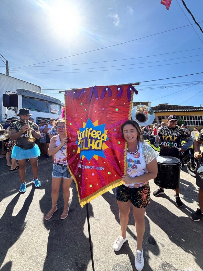 A vereadora Samanda Alves (PT) levou o Bloco Sonífera Ilha pelas ruas da Redinha nesta segunda-feira (16), reunindo foliões ao lado da governadora Fátima Bezerra