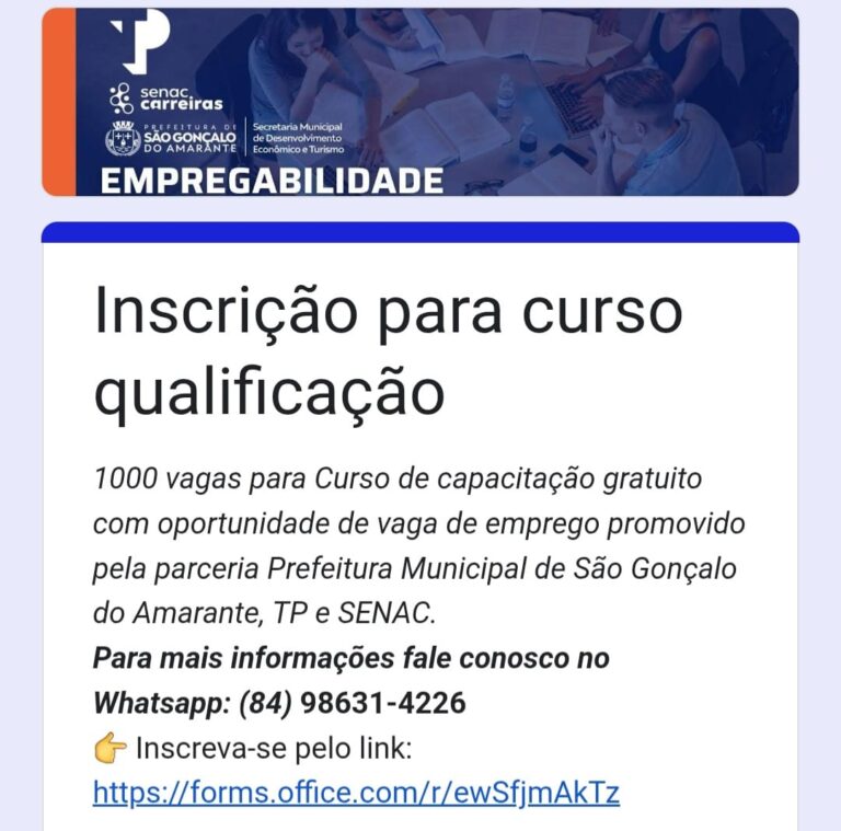 A população de São Gonçalo do Amarante tem uma grande oportunidade para ingressar no mercado de trabalho. A empresa Teleperformance, em parceria com o Senac